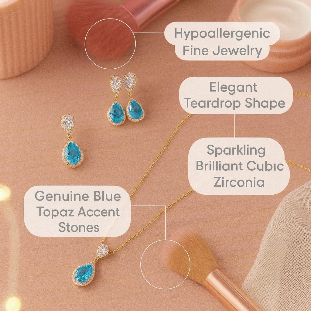 Blue Teardrop Necklace Set: Ocean-Inspired Sparkle