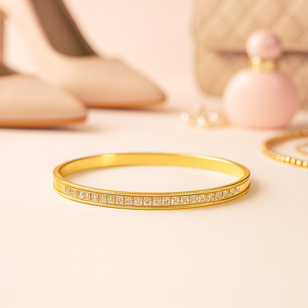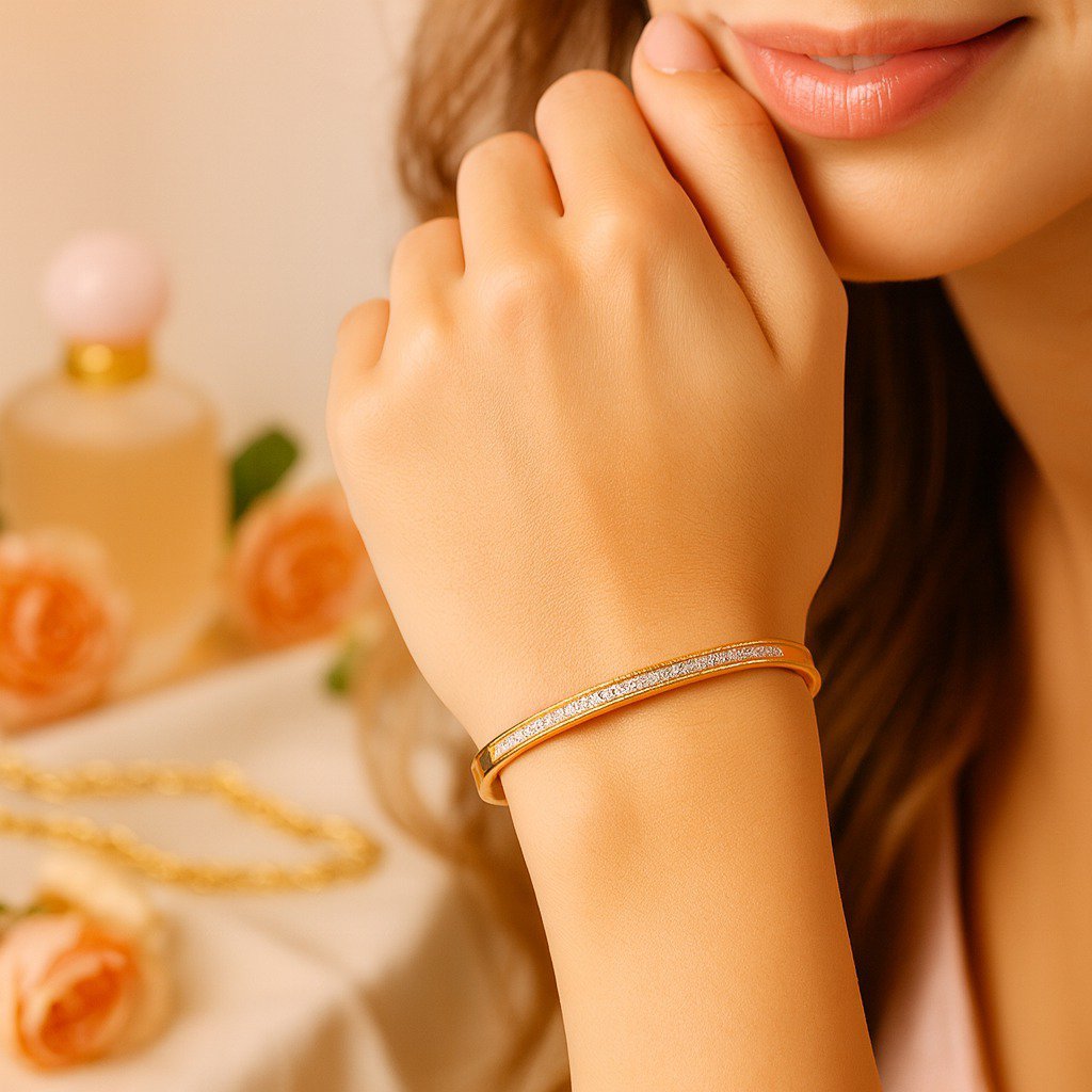 Classic Crystal Gold Plated Bangle – Lightweight, Skin-Friendly