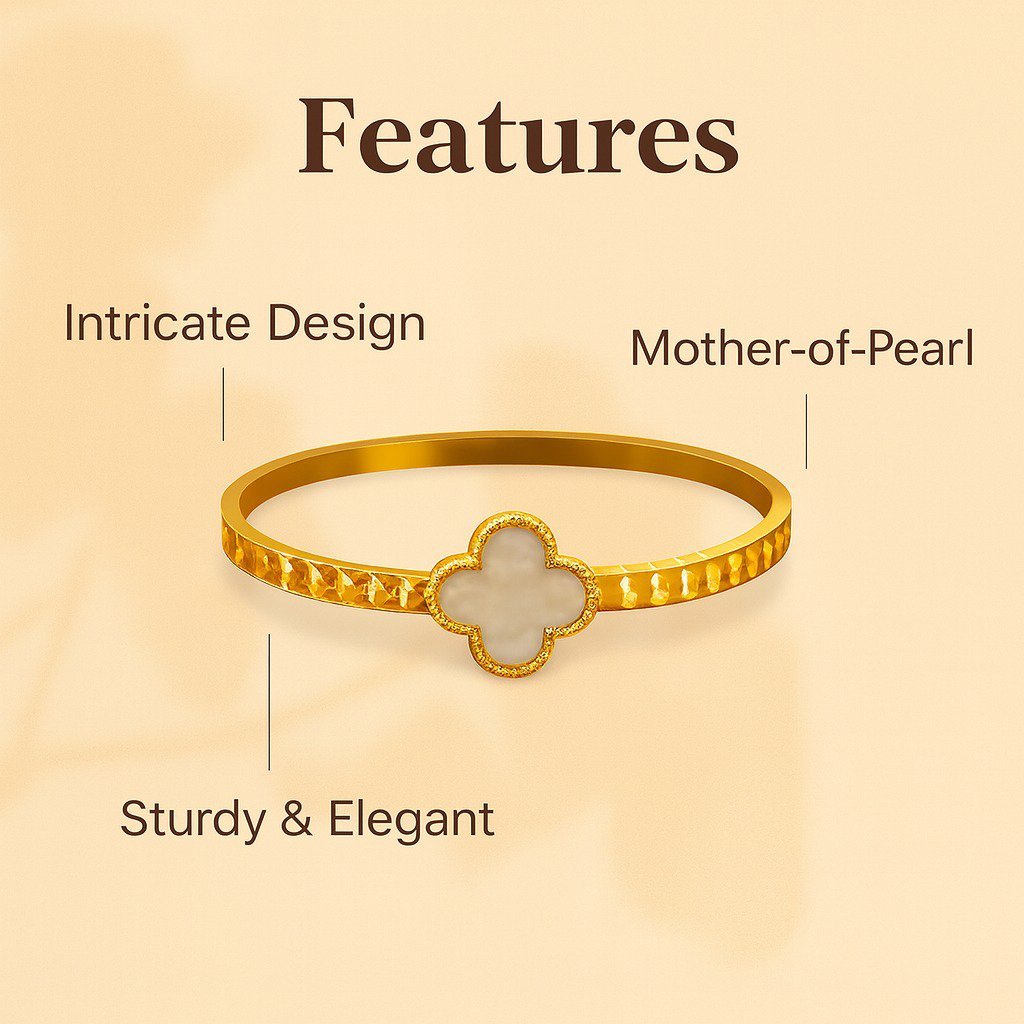 Clover Medallion Gold Plated Bangle – Textured Band, Lightweight