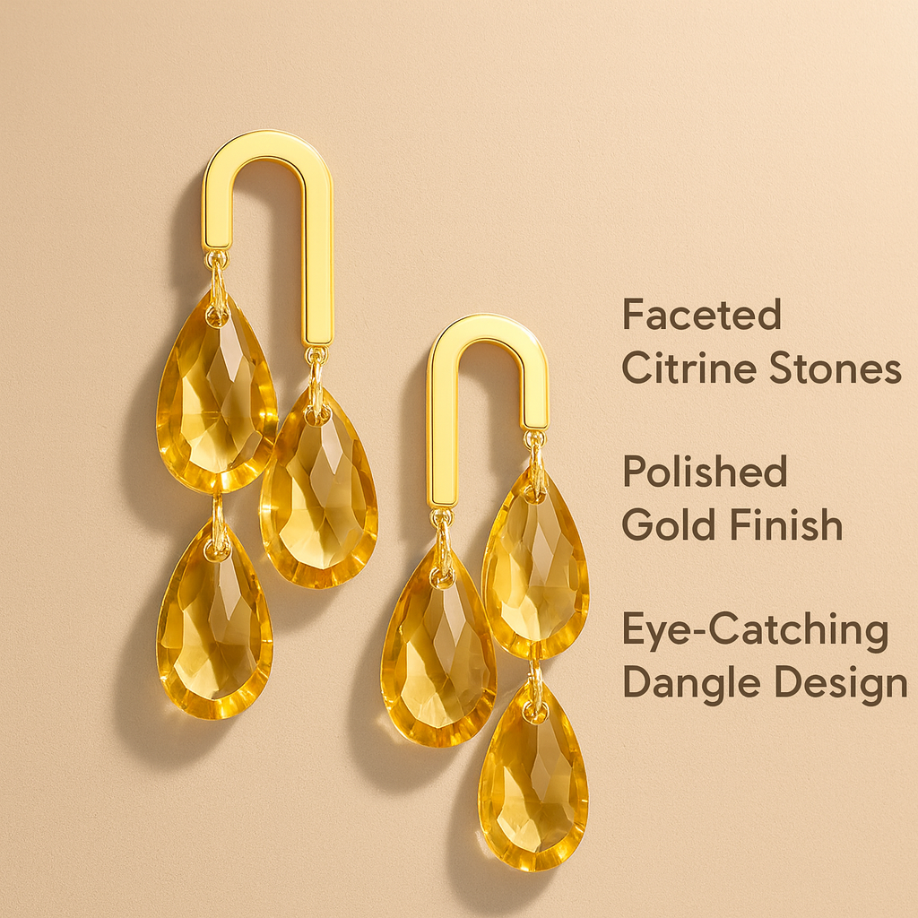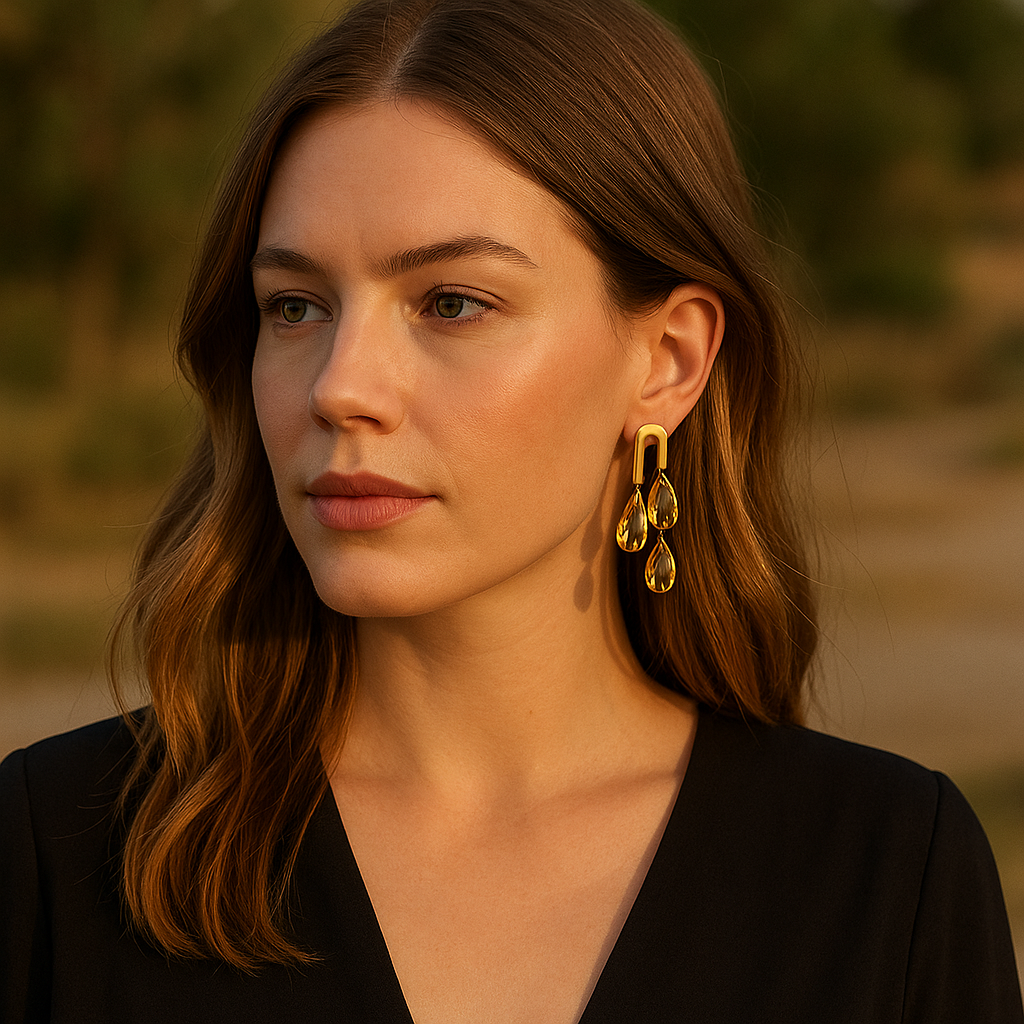 Why Choose These Gold-Plated Triple Amber Teardrop Dangle Earrings?