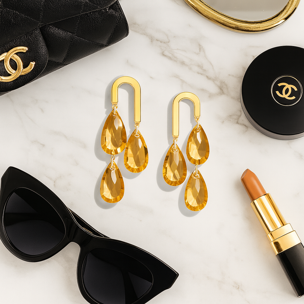 Experience dramatic style and captivating movement. Measuring approximately 4.5 cm (height) by 1.1 cm (width), these Long Gold Cascade Drop Earrings offer a graceful, elongated silhouette that is universally flattering. The arrangement of the Golden Crystal Tiered Drop Earrings creates a beautiful visual rhythm, drawing the eye down and elongating the neck. The sunny, warm tone of the amber crystal is highly versatile, pairing beautifully with deep jewel tones, neutrals, and black attire, making it an excellent choice for galas, formal dinners, or any occasion requiring a touch of refined drama. The secure post-back closure (or similar closure type) ensures comfort and stability. Furthermore, we create all our jewelry to be skin friendly imitation jewellery, ensuring a comfortable and hypoallergenic experience, so you can wear this charming, stylish pair with absolute confidence. For styling advice on large drop earrings, check out the latest runway trends for inspiration.