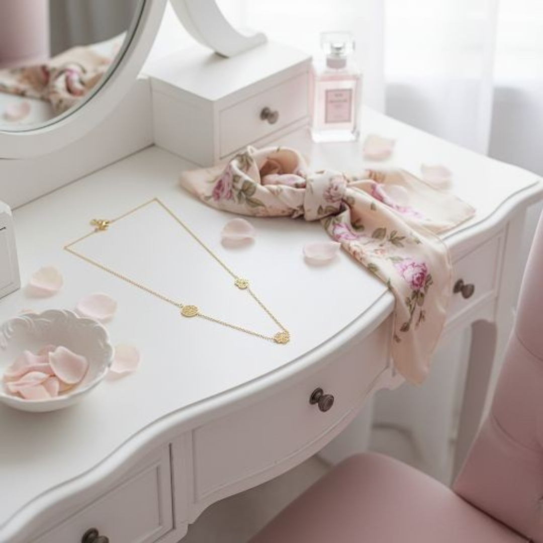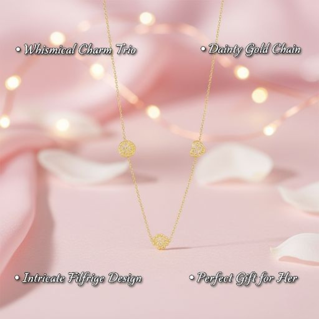 Add a touch of sweet, subtle elegance to your collection with this exquisite Gold Station Charm Necklace. This Delicate Layering Necklace Gold features three charming mini-pendants—a round floral disc, a dainty heart, and a shimmering small flower—perfectly spaced along a fine link chain. Therefore, this piece is ideal for those who love understated, feminine jewelry or for anyone looking for the perfect base to start a layered necklace look. The micro-pave detailing on each charm catches the light beautifully, adding just the right amount of sparkle. This truly is the perfect Multi-Charm Dainty Necklace for everyday wear.