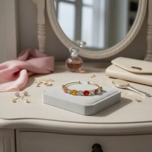 Inject vibrant energy into your look with this stunning Women’s Gold Plated Bangle. This unique piece perfectly blends classic elegance with a lively splash of color, creating an accessory that truly stands out. Therefore, it is the ideal choice for brightening up any outfit, from everyday casual to special occasion wear. Its open, elegant design is inspired by refined Korean Style Gold Stone Bangle trends, offering a chic look that feels incredibly light on your wrist. This truly is the perfect Women’s Gold Plated Bangle for those who love to express their personality through their accessories.