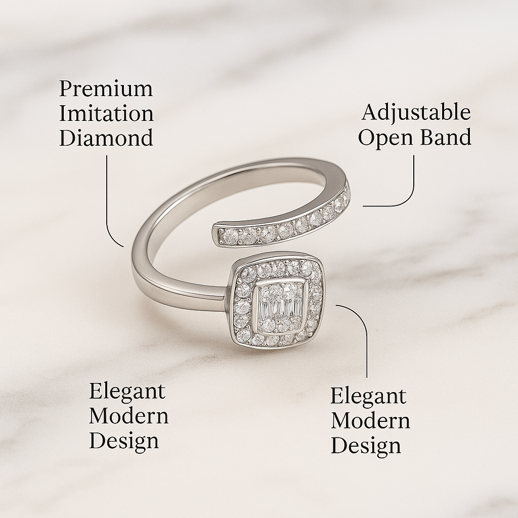 Experience dramatic luxury and impeccable quality without the commitment. We meticulously craft this exquisite Square Baguette Statement Ring with a durable, lustrous silver-toned plating, ensuring a rich, real-metal sheen. The design is spectacular: the central arrangement of baguette CZs within a square halo gives the ring an architectural beauty, creating a magnificent focal point. Furthermore, we create all our jewelry to be skin friendly imitation jewellery, ensuring a comfortable and hypoallergenic experience, so you can wear this piece with confidence. The open structure makes this a Hypoallergenic Adjustable Ring; consequently, it can easily accommodate approximate sizes around 2cm in diameter, offering a custom fit.